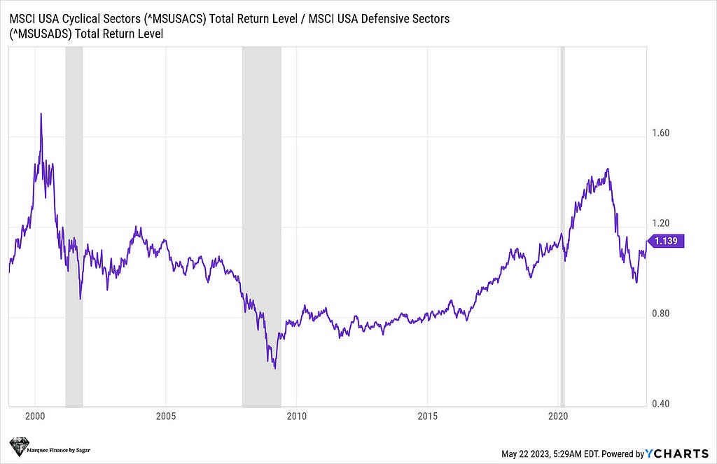 Furthermore, markets have long positioned for the most anticipated recession of our lifetimes. As a result, defensives were outperforming the cyclical all through Q123.