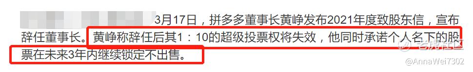 就在拼多多被輿論浪潮裹挾之時,黃崢告知各位:“自己的1:10超級投票權失效,承諾個人名下的股票在未來3年內繼續鎖定,不出售”。