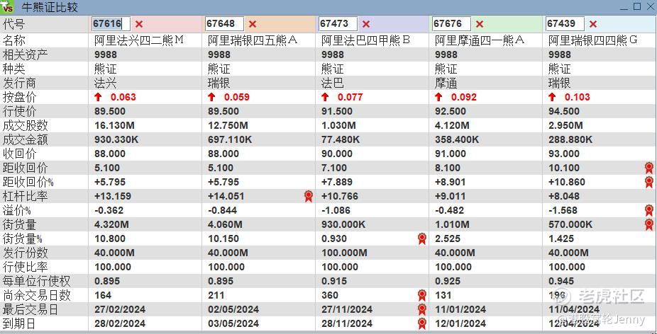 阿里巴巴熊證街貨增加1.6%,2024年4月到期,收回價10% 的熊證街貨增加最為明顯;其次為2024年1月到期,收回價10% 的熊證為第二大街貨增加產品。阿里巴巴熊證整體成交額減少53.4%。