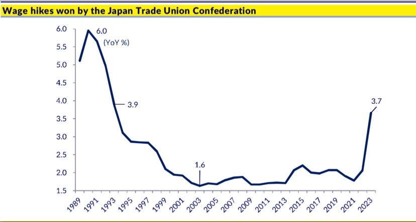 All in all, the current inflationary episode is unique as it’s leading to what looks like a “sustained” increase in nominal wages. The fear remains that BoJ is fuelling the wage-price spiral by following an ultra-loose monetary policy.