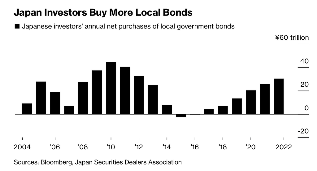 As a result, since the beginning of 2022, Japanese institutional investors (banks, life insurers and pension funds) have been shunning overseas bonds and buying local JGBs.