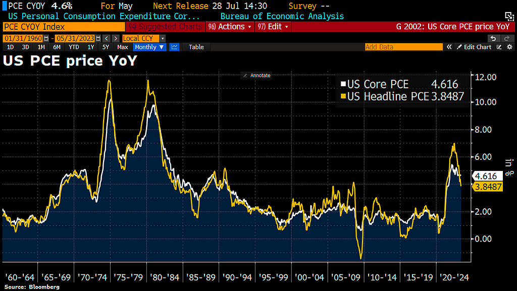 Fed’s preferred inflation measure: Core PCE, which even JayPo mentioned in the Sintra talks, came in at 4.6%, which was a tad lower than what Street was expecting.