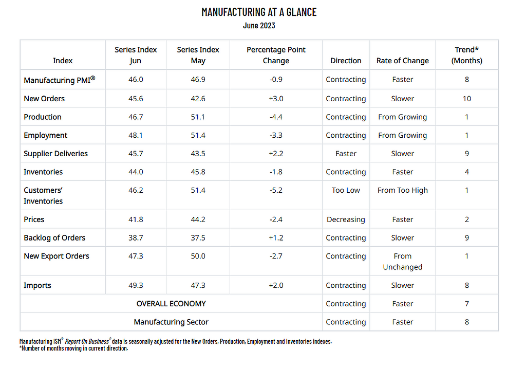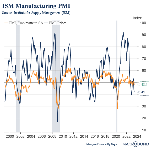 The ISM has not collapsed to 40 or below levels due to the two most resilient components: Employment and Prices.