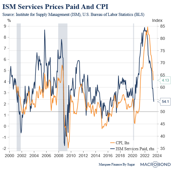 Even the ISM Services confirm the downward trend in inflation; if ISM Services is believed, we may see a 2% handle on headline number in H2.