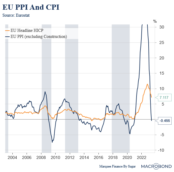 On the inflation front, the EU PPI gave in a first negative print since 2020, thanks to the plunge in energy prices.