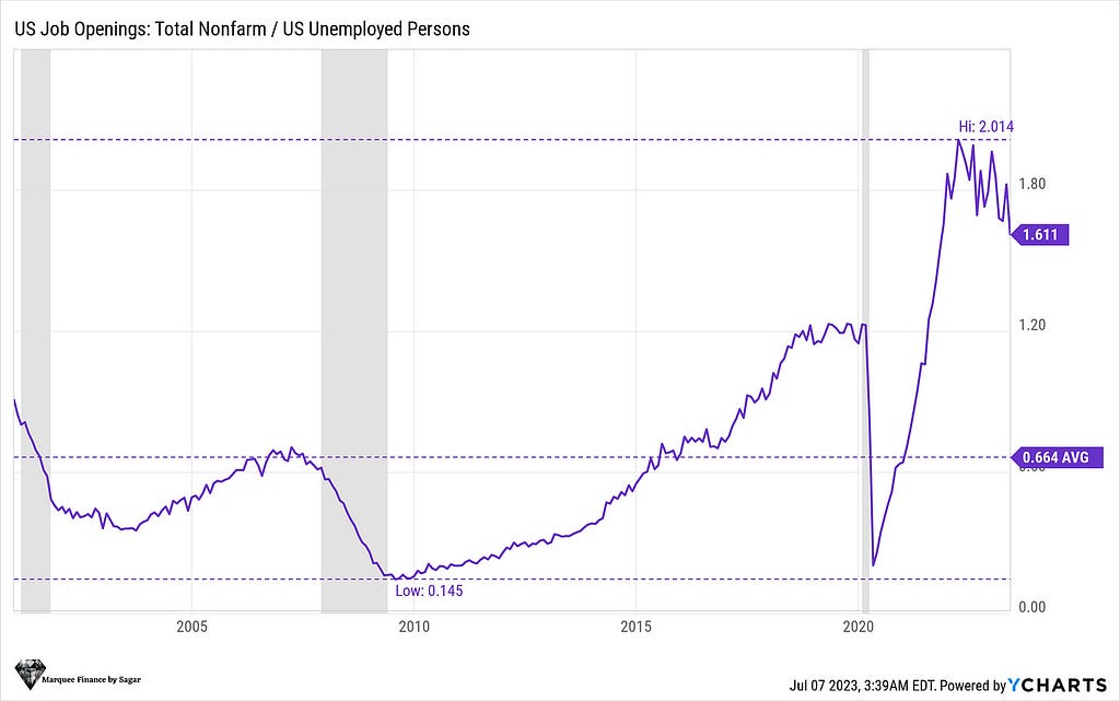 - Vacancies/Unemployed remains elevated, and we need the UR to move up to 5%+ before it normalizes to the pre-covid trend.