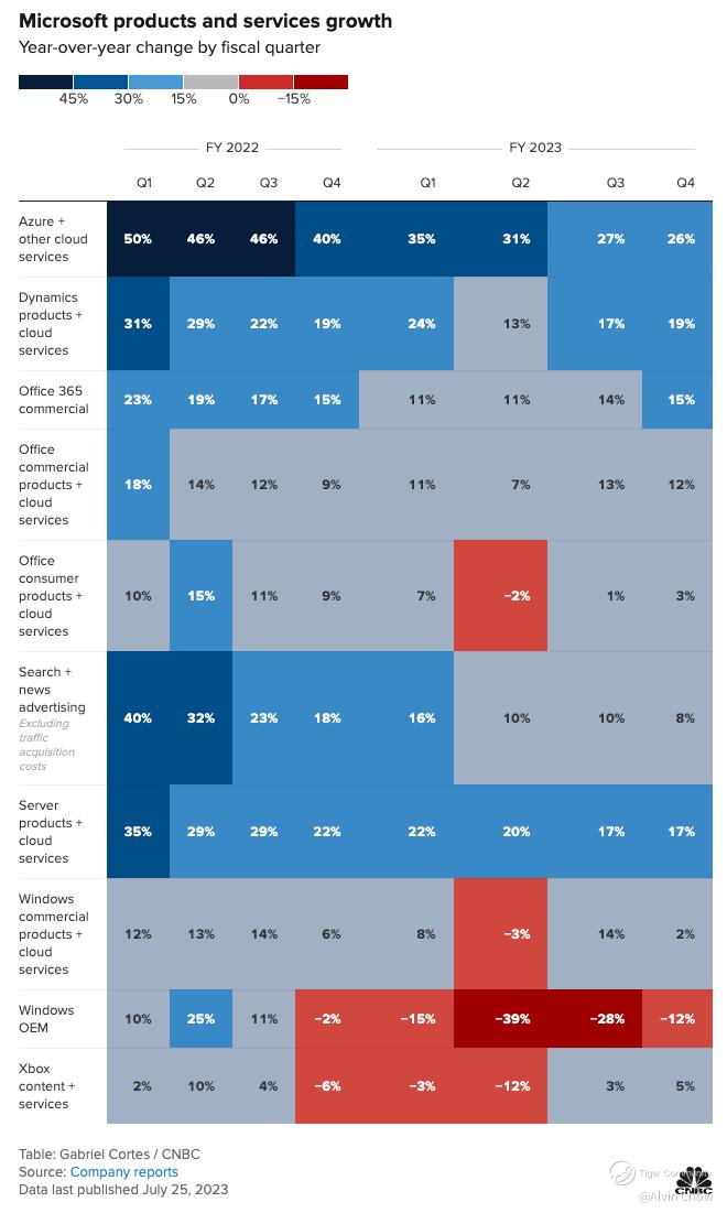 CNBC has a useful chart which we will use to discuss Microsoft's product performances and their trends: