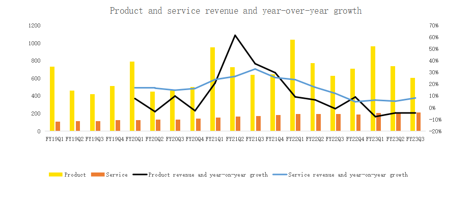 Surprisingly, the business that led to the increase in gross profit margin was products. In the third quarter of fiscal year 2023, the gross profit margin was 35.4%, an increase of nearly 1%over the same period last year, while the gross profit margin of the service business was 70.5%, down 1% year-over-year: