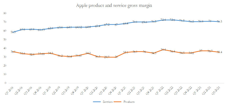 The increase in net profit was mainly due to the improvement of Apple's profitability, with gross profit margin of 44.5% in the third quarter of fiscal 2023, the highest in nearly 10 years:
