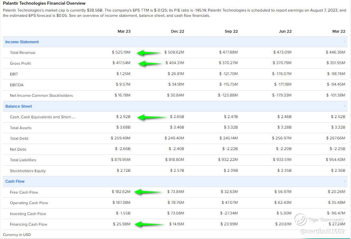 Palantir has shown very good improvement in revenue, gross profits and cash flow. This should continue as there have been many new deals.