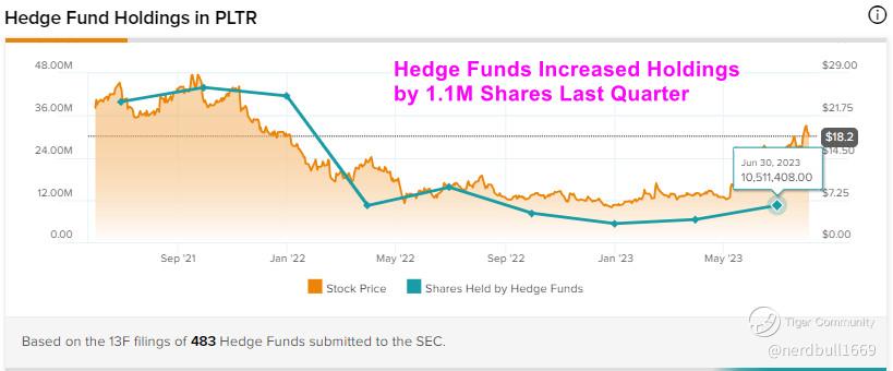 Palantir hedge funds investors have good confidence in this company as they have increase 1.1M shares in the last quarter.