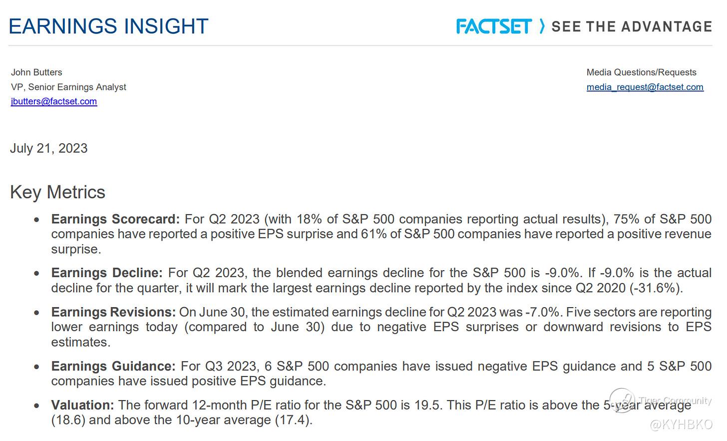 From the Factset data report above dated 21 July 2023, it has reported an S&P500 blended earnings decline of -9.0% and it is potentially the largest earnings decline reported by the index since Q2 2020. (Blended earnings include the actual earnings and the expected earnings for the rest that are yet to be announced.)