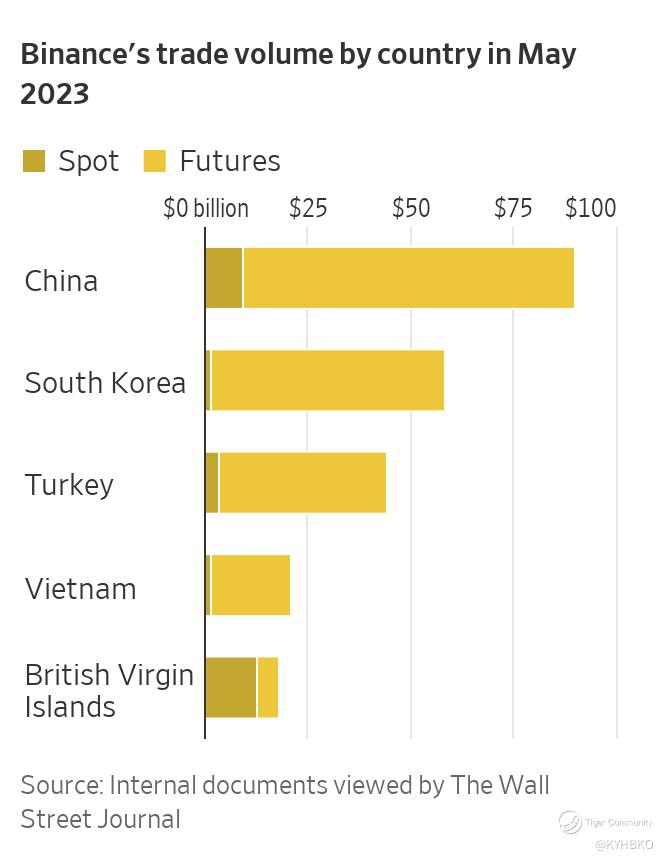 Extract from the WSJ news article:Binance, the world’s largest crypto exchange, was supposed to leave China behind when the country made cryptocurrency trading illegal in 2021.Almost two years later, users traded $90 billion of cryptocurrency-related assets in China in a single month, according to internal figures viewed by The Wall Street Journal and current and former employees. The transactions made China Binance’s biggest market by far, accounting for 20% of volume worldwide, excluding trades made by a subset of very large traders.China’s importance for Binance is openly discussed internally, according to the current and former employees. And despite the ban, the exchange’s investigations team works closely with Chinese law enforcement to detect potential criminal activity among the more than 900,000 active users in the country, according to some of the current and former employees.