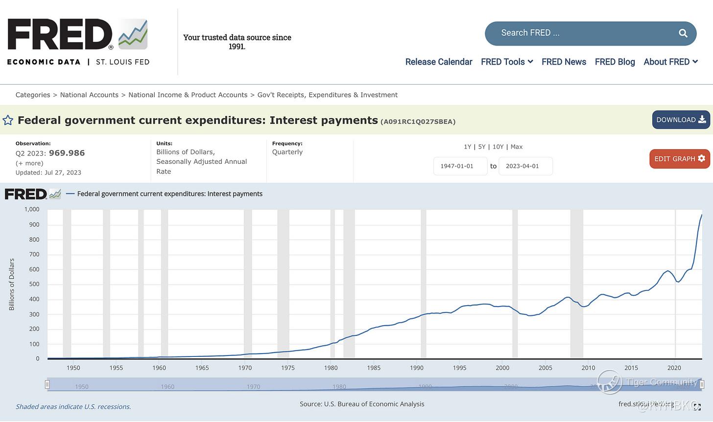 The Fed’s deficit is a major concern as the recent interest on debt payment has topped USD$969B. This is more than the budget spent on US defence. It seems that more debt will be incurred and this debt cycle is spiralling in the wrong direction.