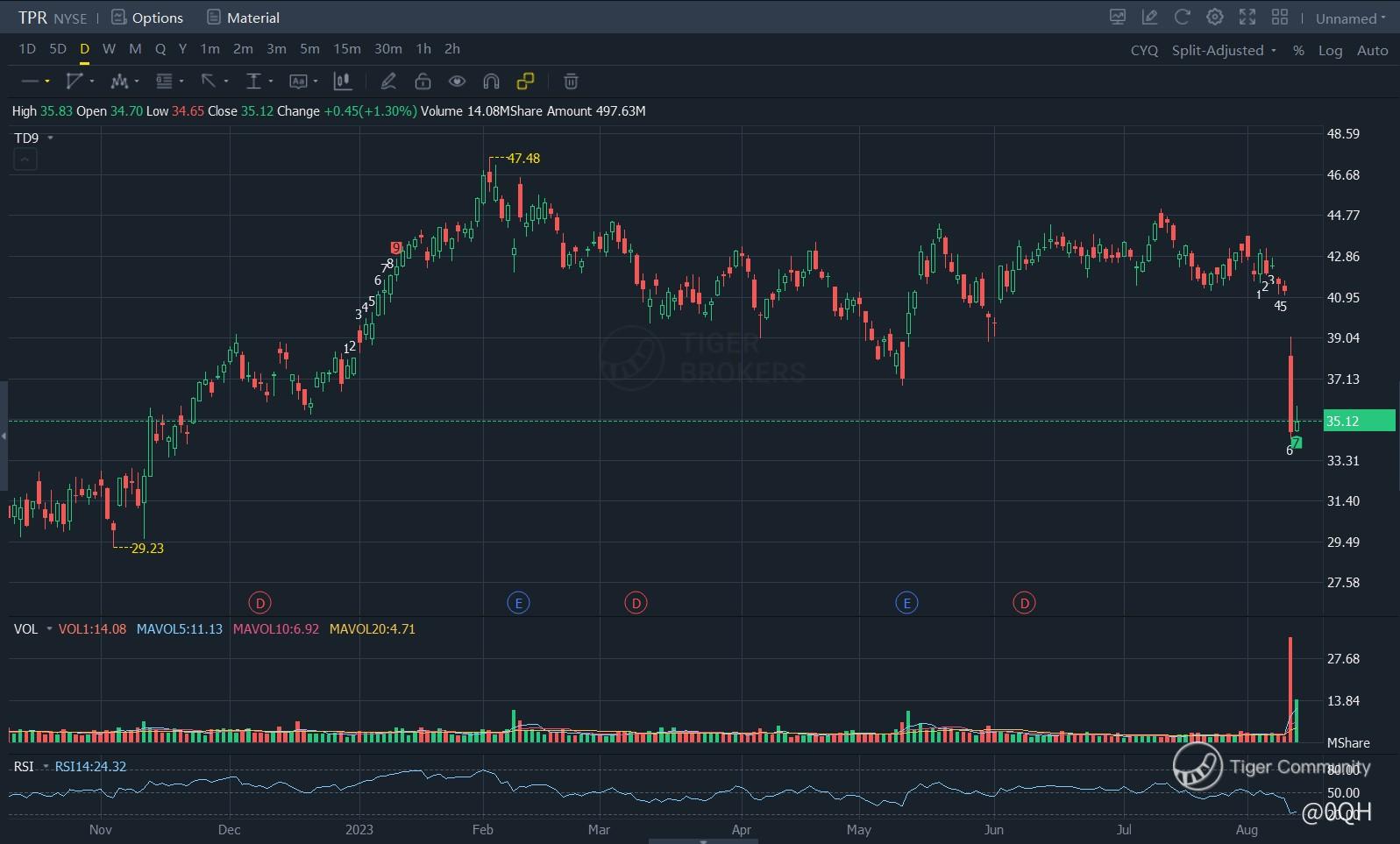 On August 10, 2023, Tapestry faced a steep decline of around 16% following the news of its potential acquisition of Capri Holdings. However, rather than viewing this as a reason to steer clear, astute investors see this as a time to seize potential gains through the strategic use of put options.