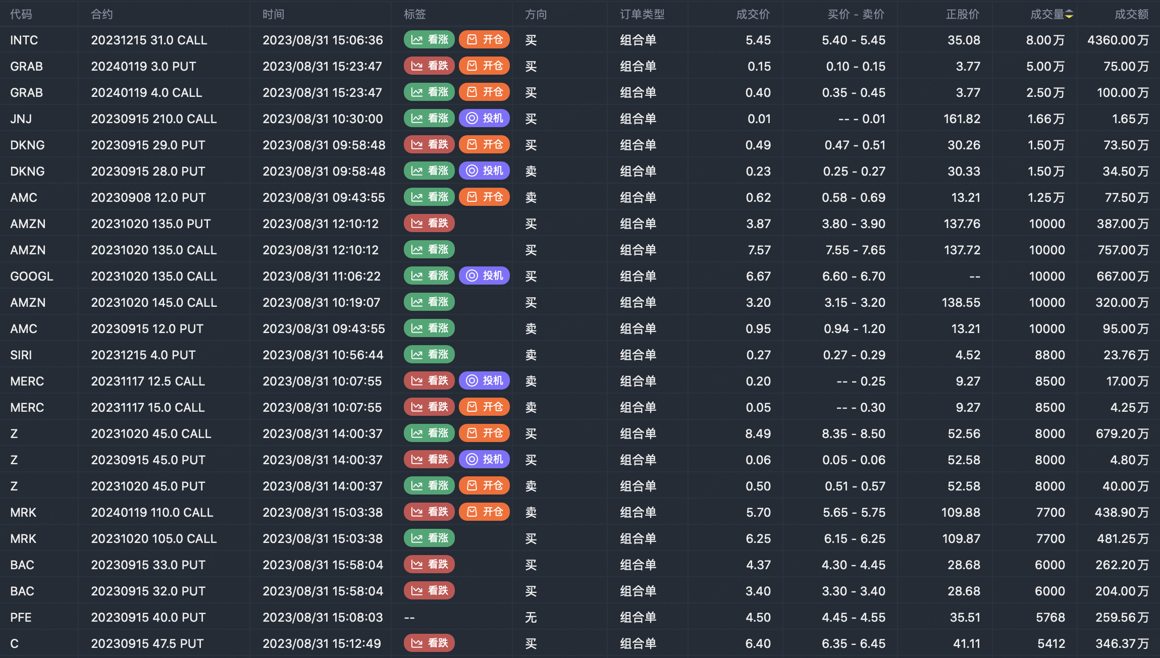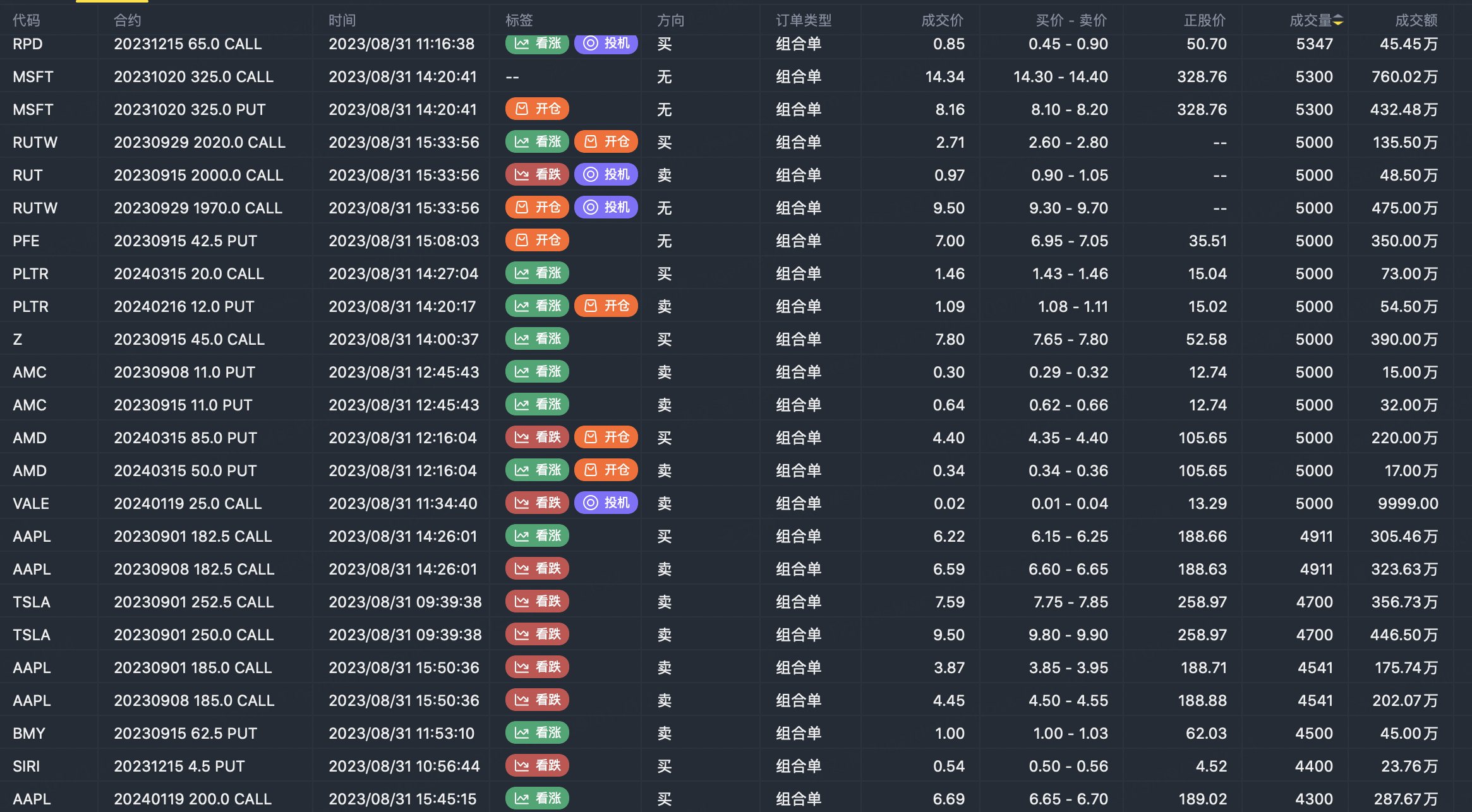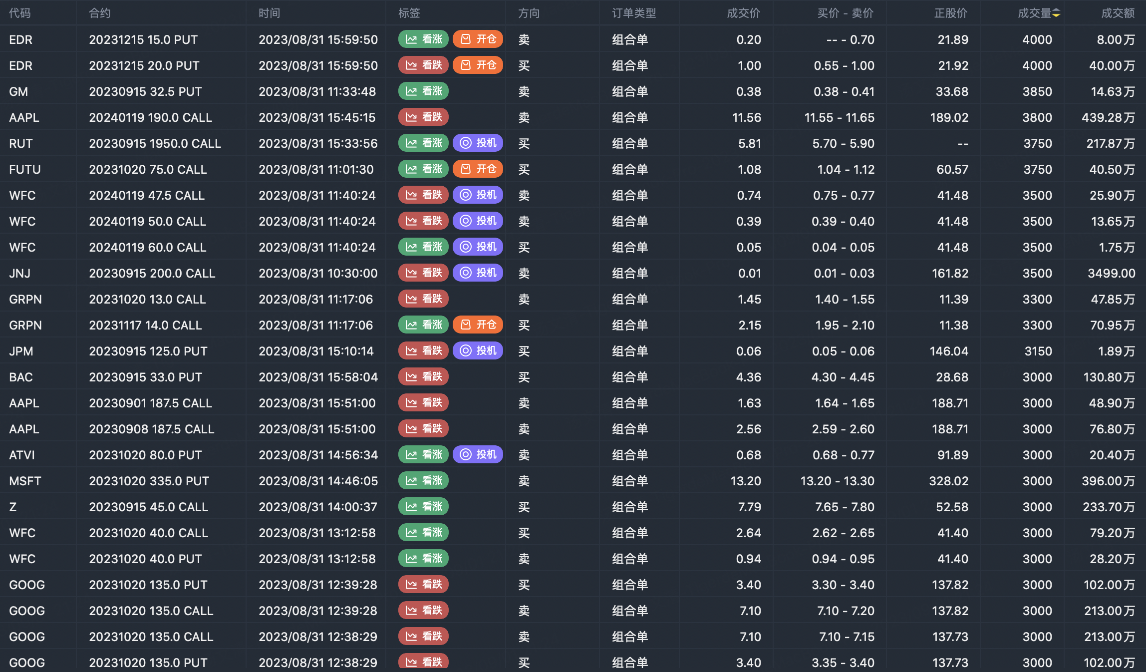 Note: This image data is from Tiger PC. This screening is a significant portfolio of options contracts in the market. Portfolio opening includes a variety of underlying trends, requiring traders to further master the basic knowledge of options for analysis and judgment.