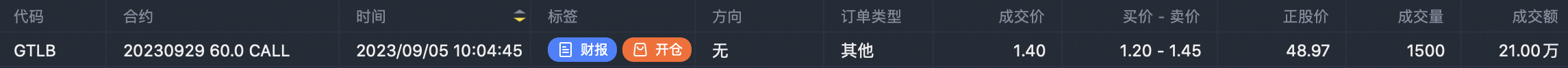 $GitLab, Inc.(GTLB)$ Call option expires on Sep 29, open position, strike price 60, 1500Lot(s), turnover $210,000