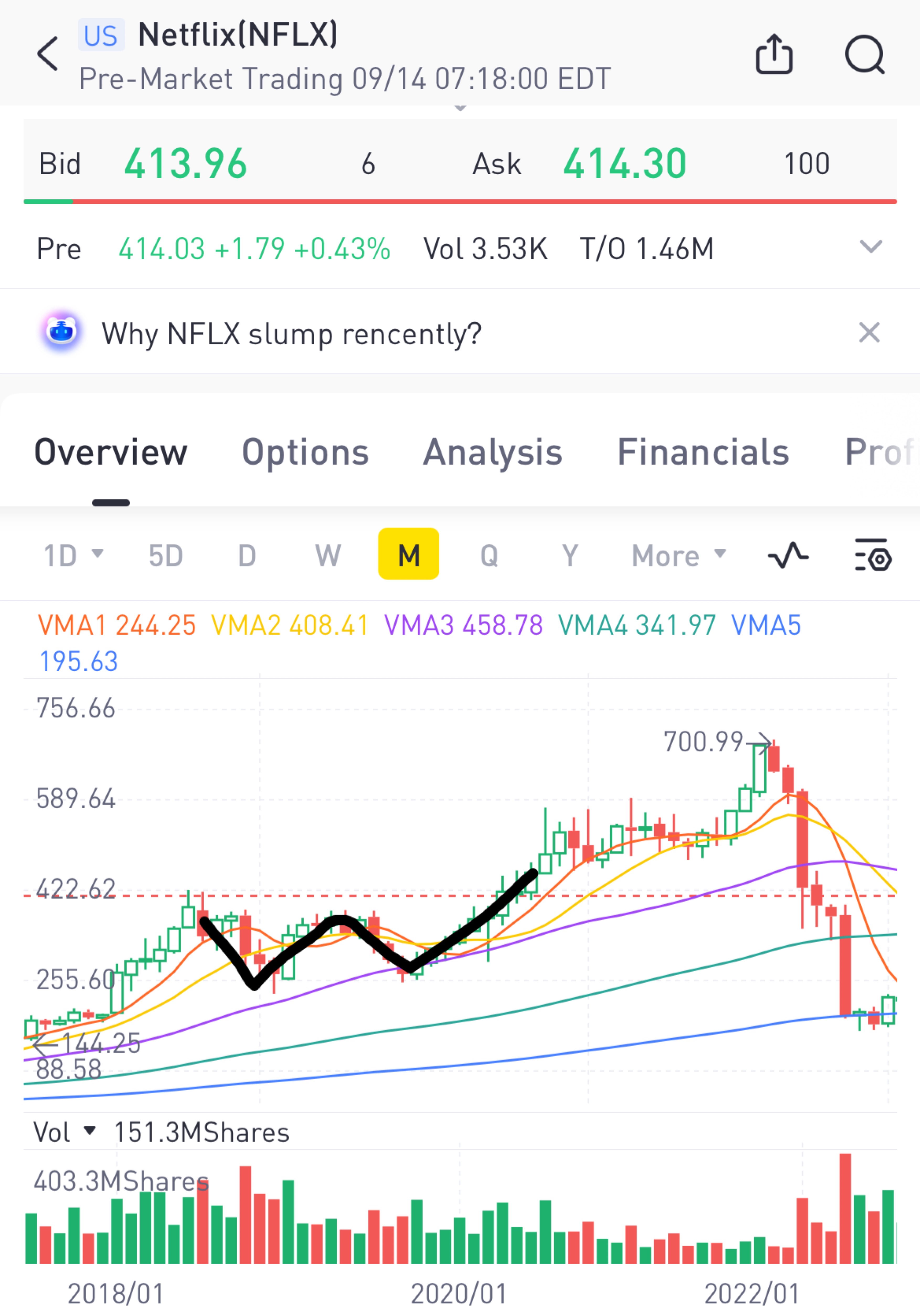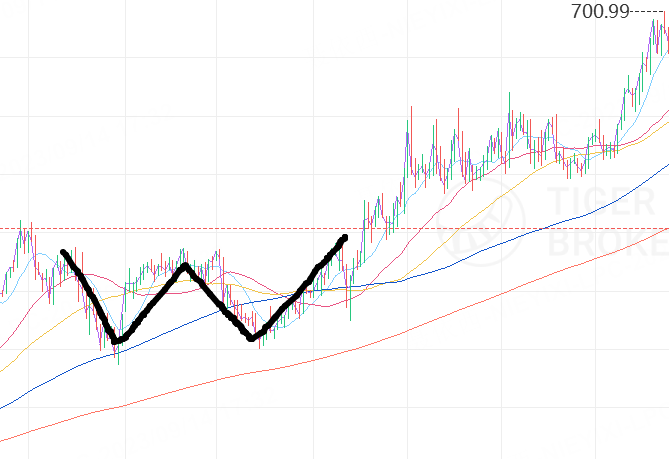 it's easy to spot the W chart, but it's hard to predict that the share will continue to go up