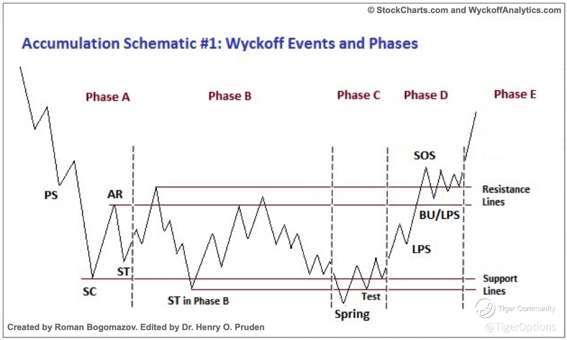 Now, let's look at a hypothetical stock with a Wyckoff Accumulation phase: