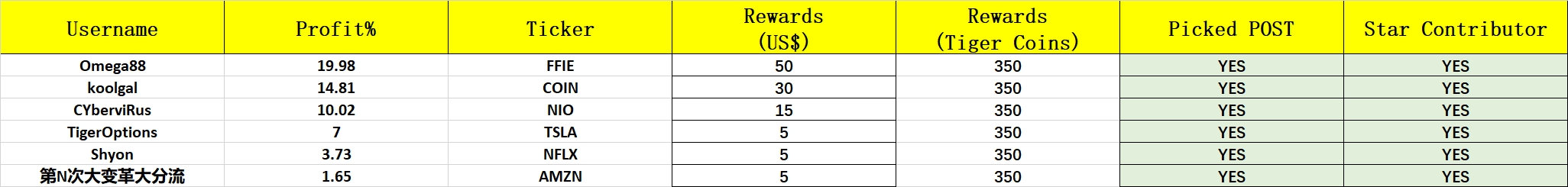 Congratulations to the following Tiger Friends for winning free voucher rewards @Omega88 @koolgal @CYberviRus @TigerOptions @Shyon @第N次大变革大分流 ! And let's specially congratulate the Tigers who are “Star Contributors”, you will receive an additional reward of 50 Tiger Coins.