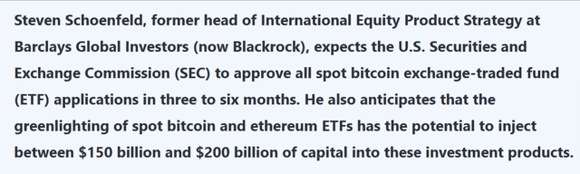 Now, let's discuss the biggest short-term impact on MARA shares, as several major institutional investors want to offer Bitcoin to their clients via exchange-traded funds (ETFs).