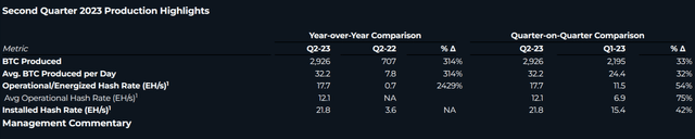 Q2 2023 was a decent quarter for Marathon Digital despite lagging Bitcoin prices. The company generated $81.8 million in revenue (Up 314% YoY) and gained $23.4 million from selling Bitcoin to fund operations. Marathon Digital sold 67% of its mined Bitcoin in Q2 2023 while holding the remaining 33% to add to its Bitcoin stack.