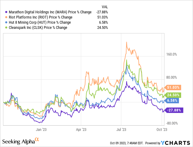 MARA shares have underperformed its 3 biggest competitors over the last 52 weeks.