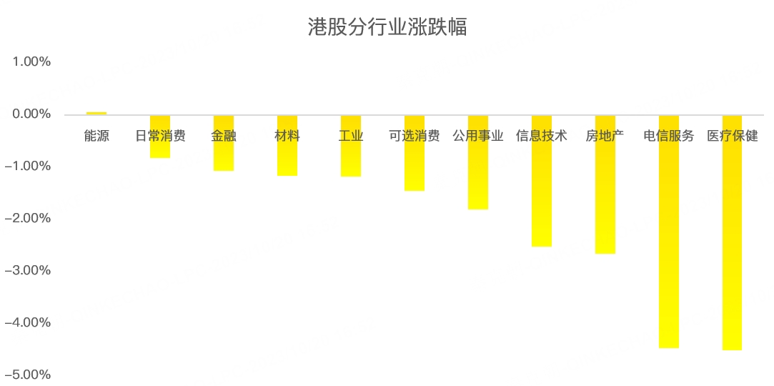 板塊方面,除能源行業之外,悉數團滅,醫療保健和電信服務領跌: