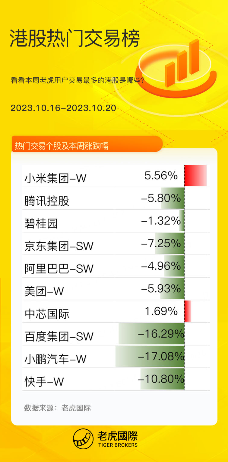 Top1:小米集團,在港股一片哀鴻遍野之下,小米近期逆勢走強,周漲5.56%,在一衆科網股中傲立船頭;