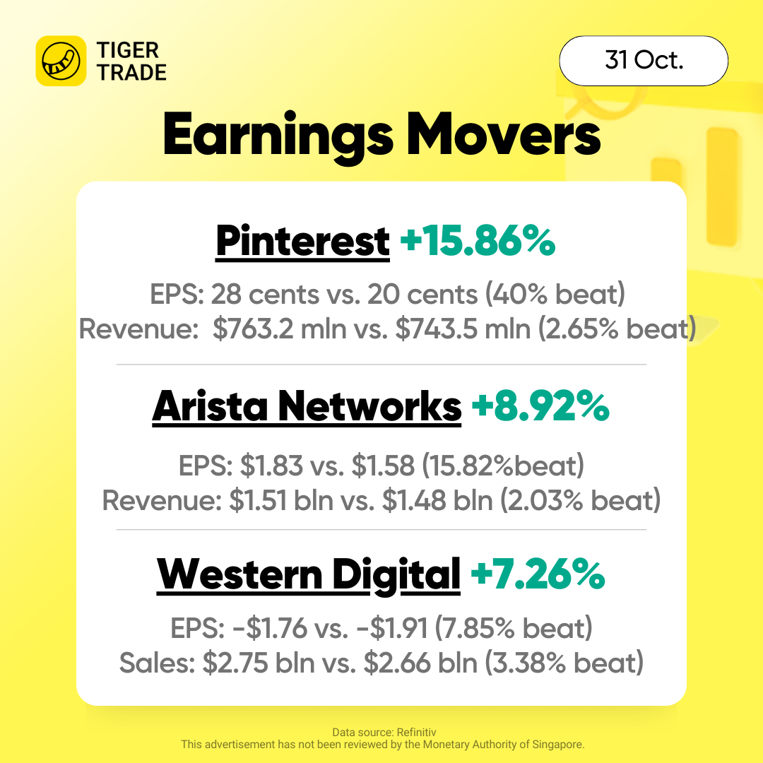 1. $Pinterest, Inc.(PINS)$ soars 15.86% after impressive Q3 earnings beat and upbeat Q4 outlook