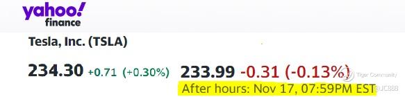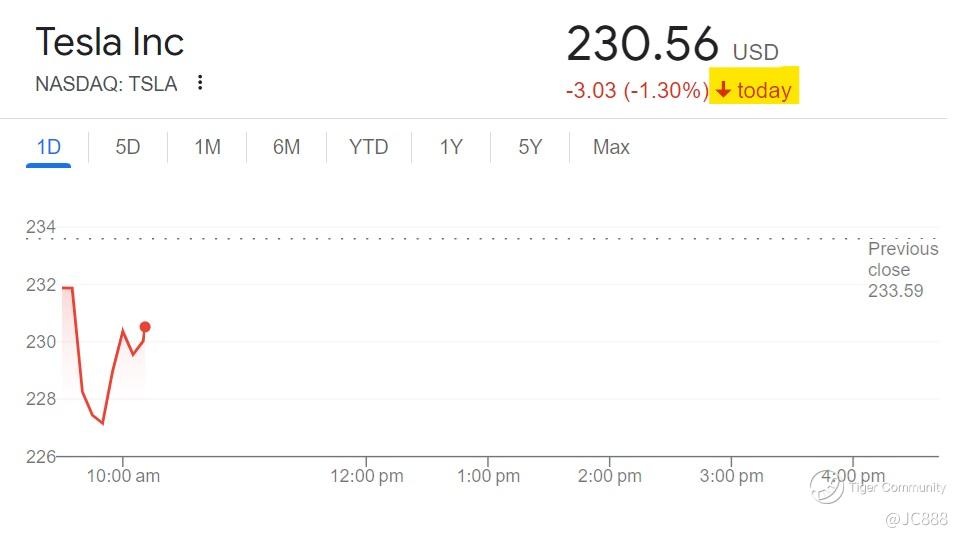 At the start of Fri, 17 Nov 2023 trading, Tesla has already fallen by -1.30% ($3.03 to $230.56 per share).