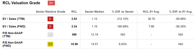 For now, RCL's FWD P/E valuation of 15.58x remains elevated compared to its 3Y pre-pandemic mean of 13.05x and the sector median of 14.57x, implying the stock's notably baked-in premium.