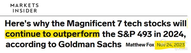 Based on GS’s baseline forecast, these 7 mega-cap tech stocks are expected to continue to outperform the remainder of the S&P 500 in 2024. (see below headlines)