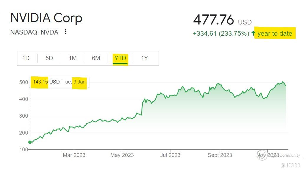 By 24 Nov 2023, although off its peak, it is still $477.76.