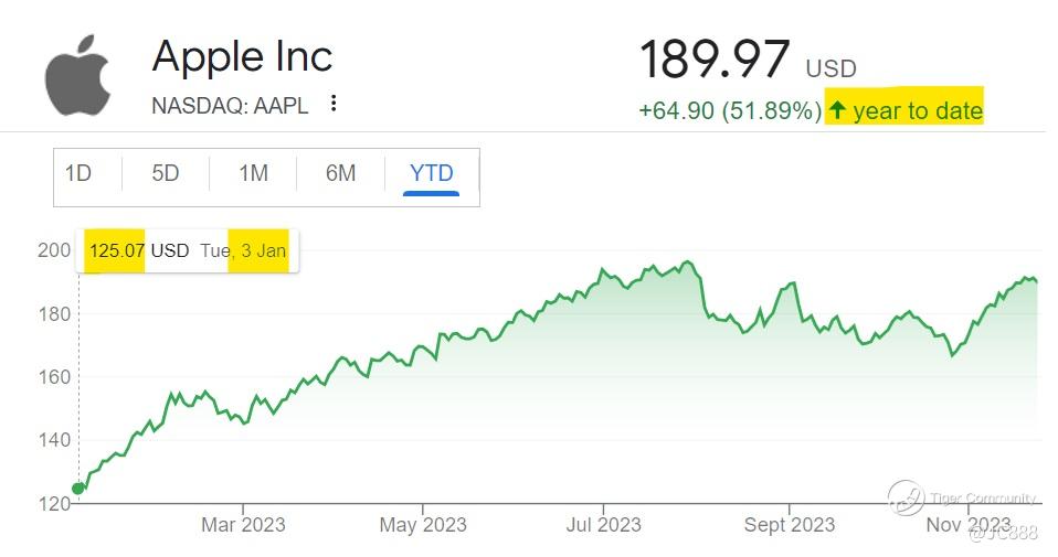 By 24 Nov 2023, although off its peak, it is still $189.97.