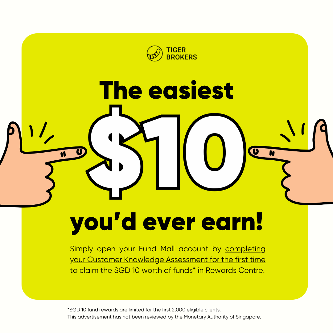 Simply open your Fund Mall account with Tiger Brokers, and the SGD 10 worth of funds is yours!