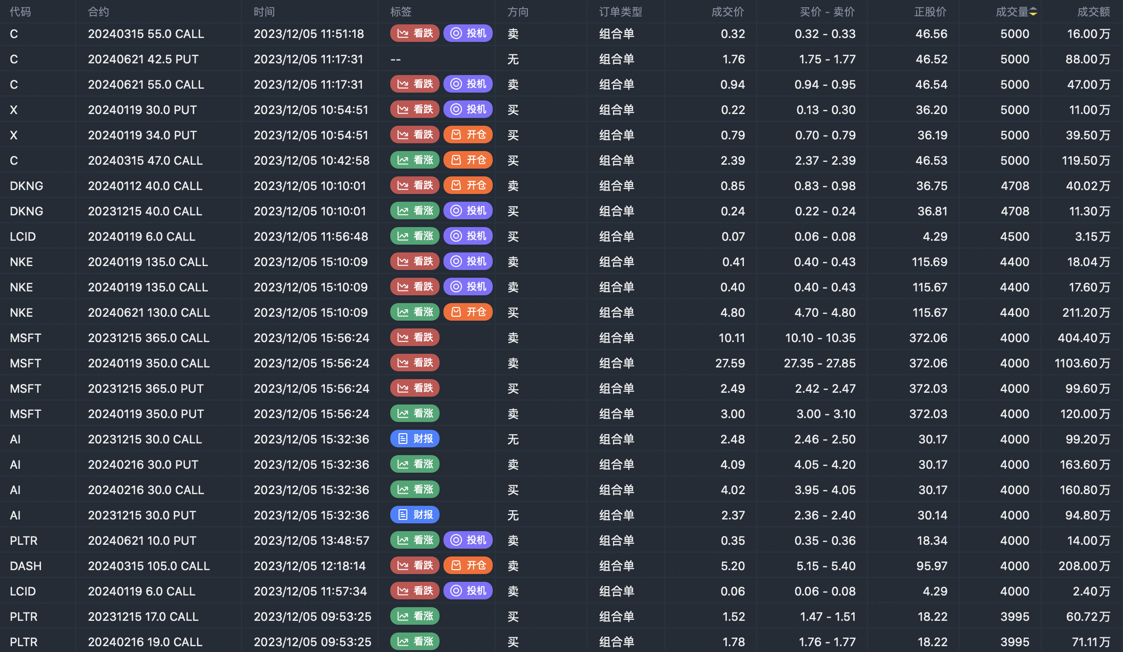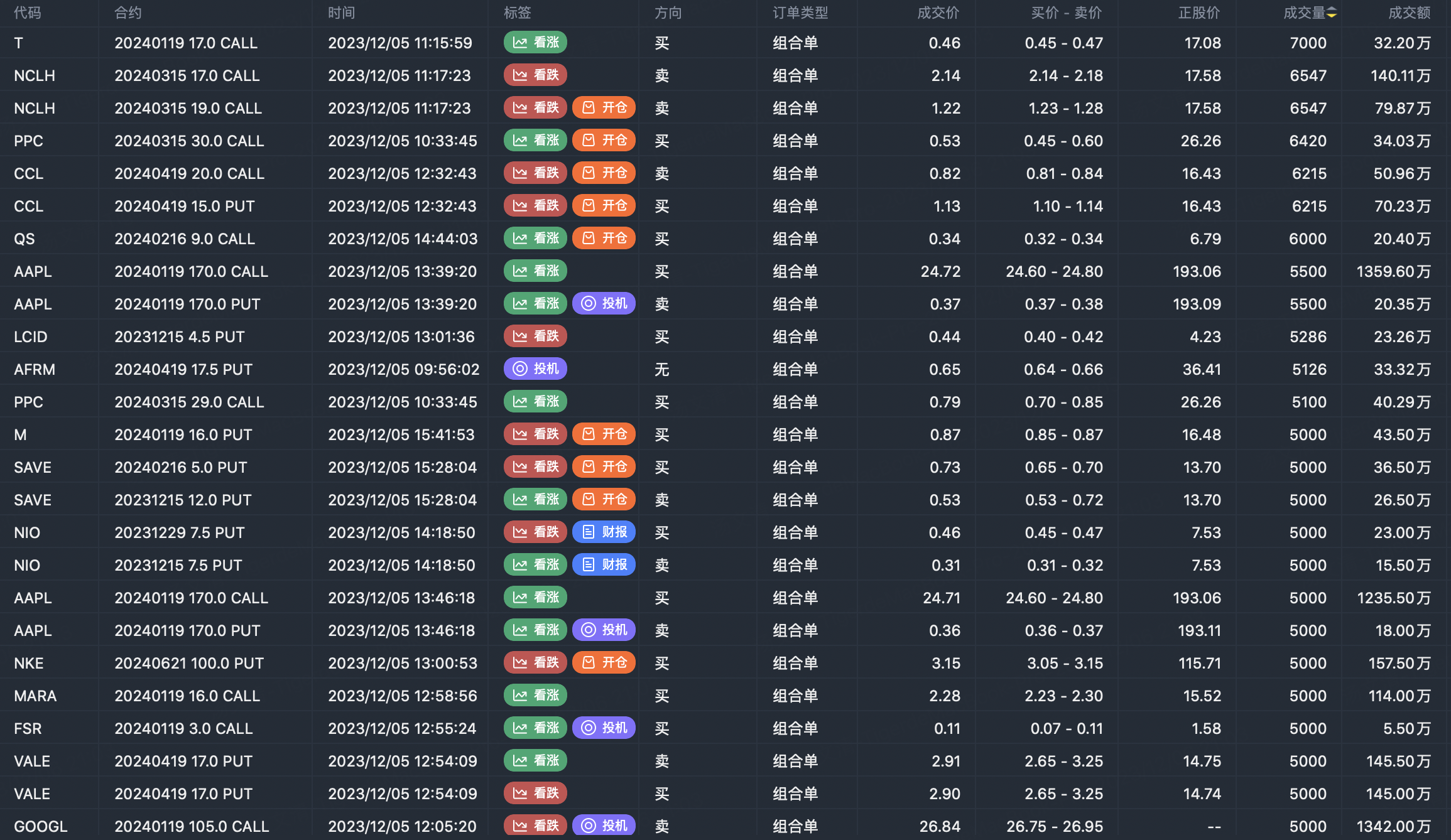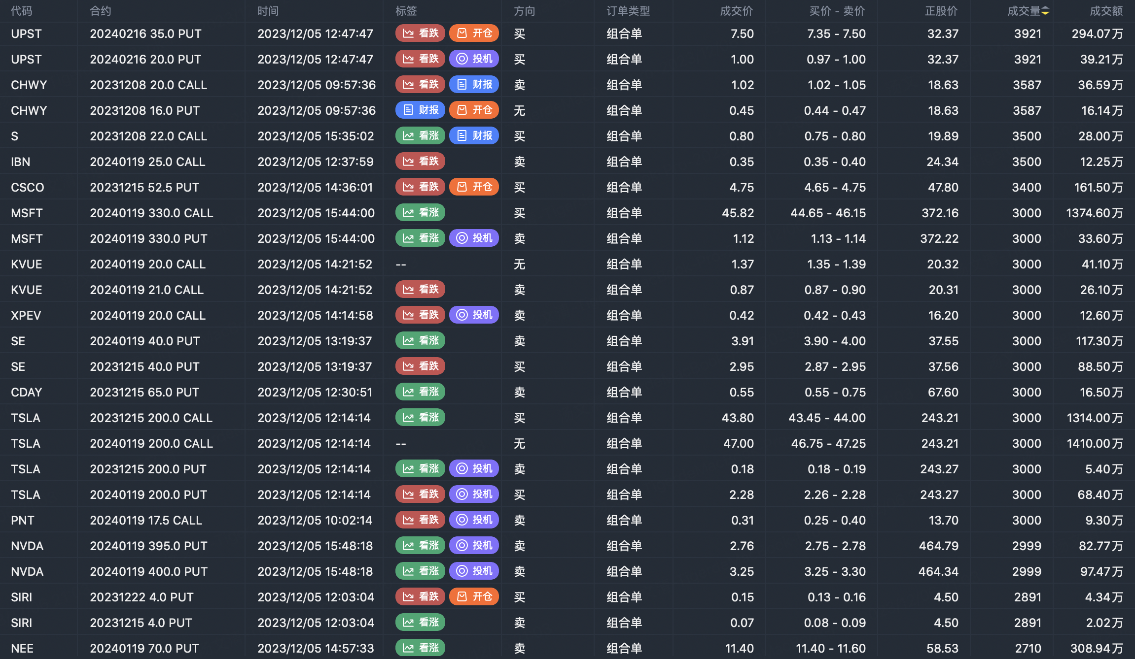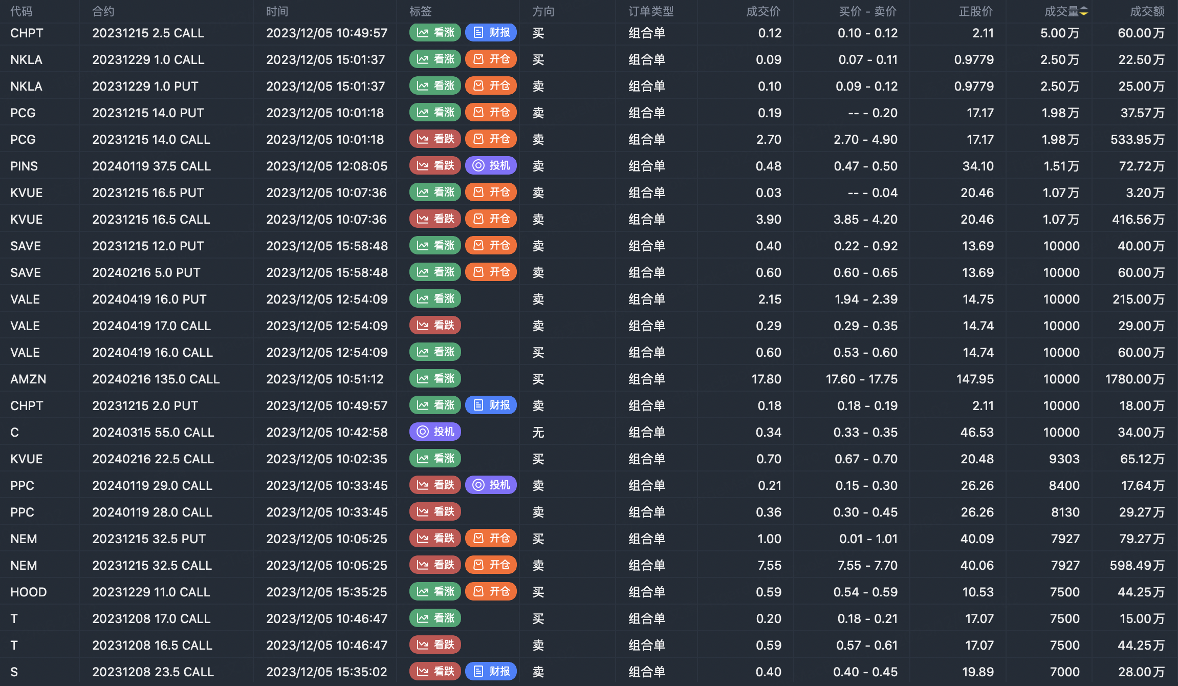 Note: This image data is from Tiger PC. This screening is a significant portfolio of options contracts in the market. Portfolio opening includes a variety of underlying trends, requiring traders to further master the basic knowledge of options for analysis and judgment.