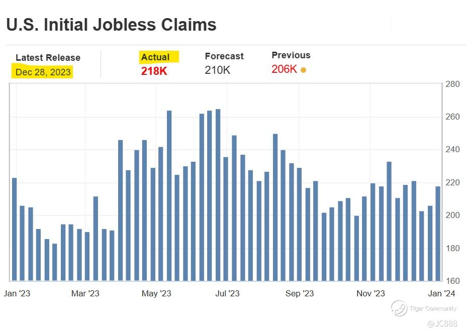 • Jobless claims rose to 218,000 for the week ending Dec. 23.