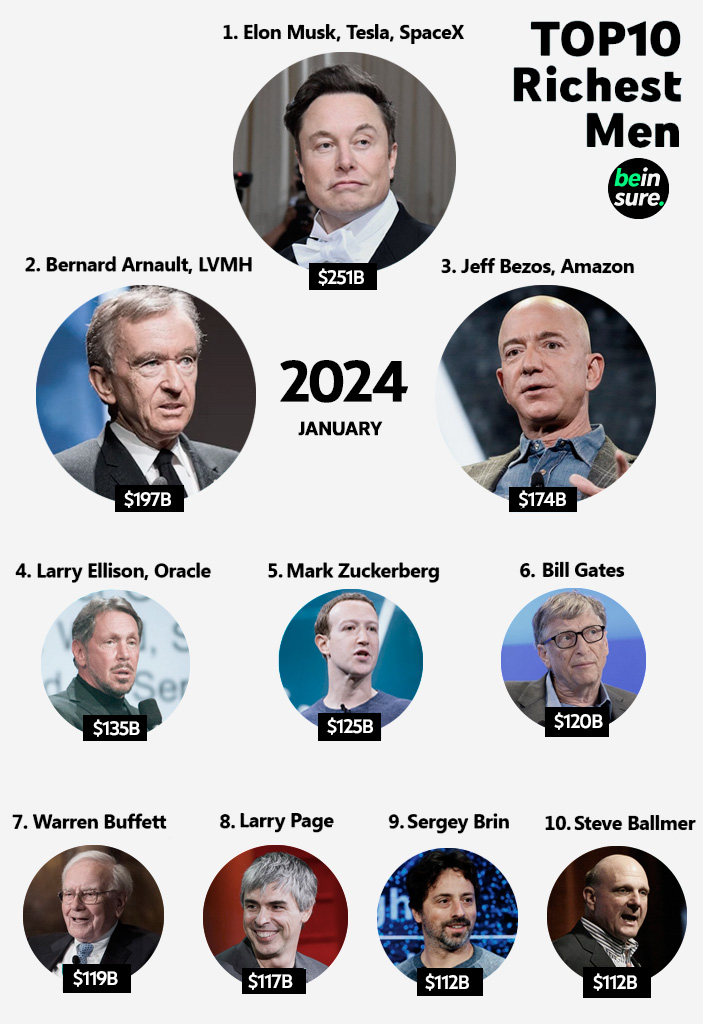 Beinsure Media compiled Forbes Billionaires Index data, revealing the latest rankings as of January 2, 2024."