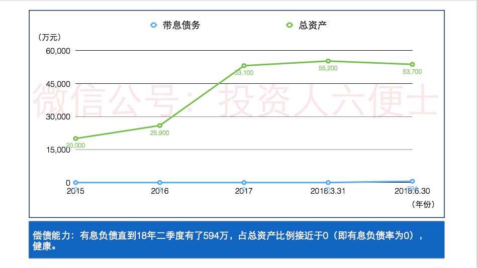 有息負債直到18年二季度有了594萬,佔總資產比例接近於0(即有息負債率爲0),健康。