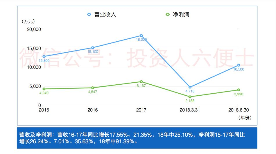 營收16-17年同比增長17.55%、21.35%,18年中25.10%,淨利潤15-17年同比增長26.24%、7.01%、35.63%,18年中91.39%。持續高速成長。