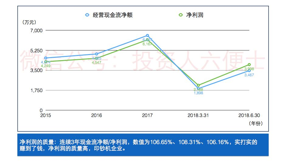 連續3年現金流淨額/淨利潤,數值爲106.65%、108.31%、106.16%,實打實的賺到了錢,淨利潤的質量高,印鈔機型企業。