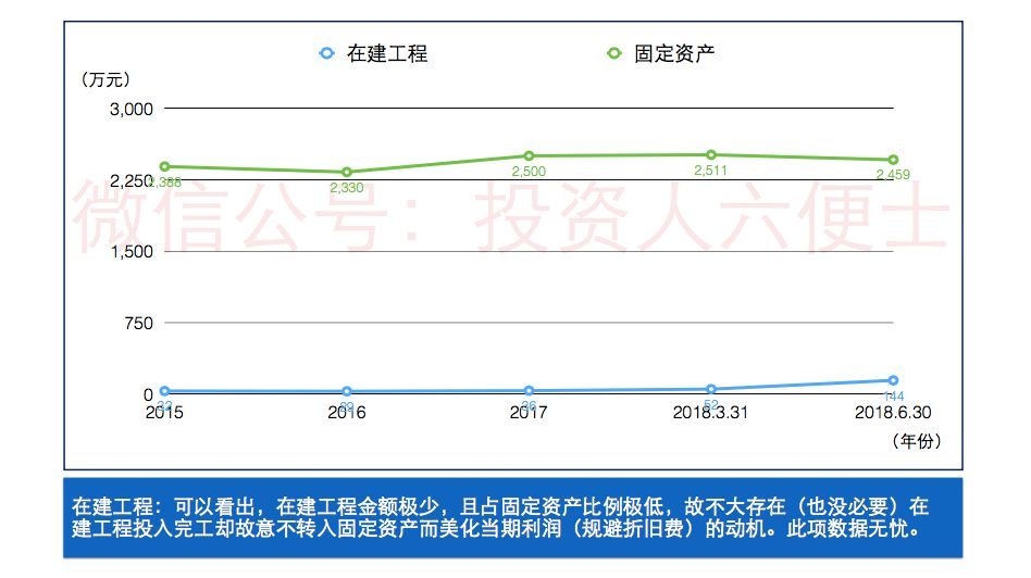 可以看出,在建工程金額極少,且佔固定資產比例極低,故不大存在(也沒必要)在建工程投入完工卻故意不轉入固定資產而美化當期利潤(規避折舊費)的動機。此項數據無憂。