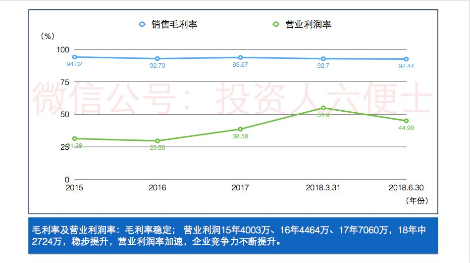 毛利率穩定; 營業利潤15年4003萬、16年4464萬、17年7060萬,18年中2724萬,穩步提升,營業利潤率加速,企業競爭力不斷提升。