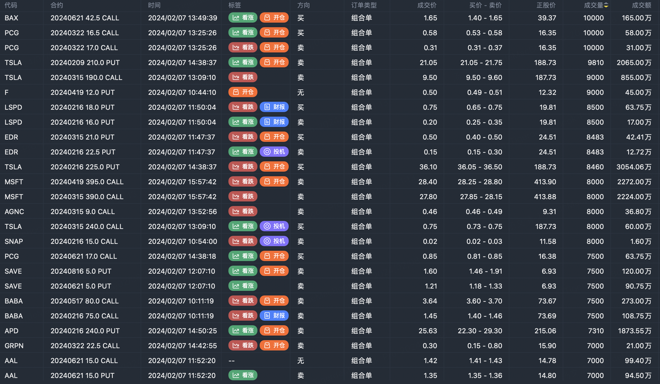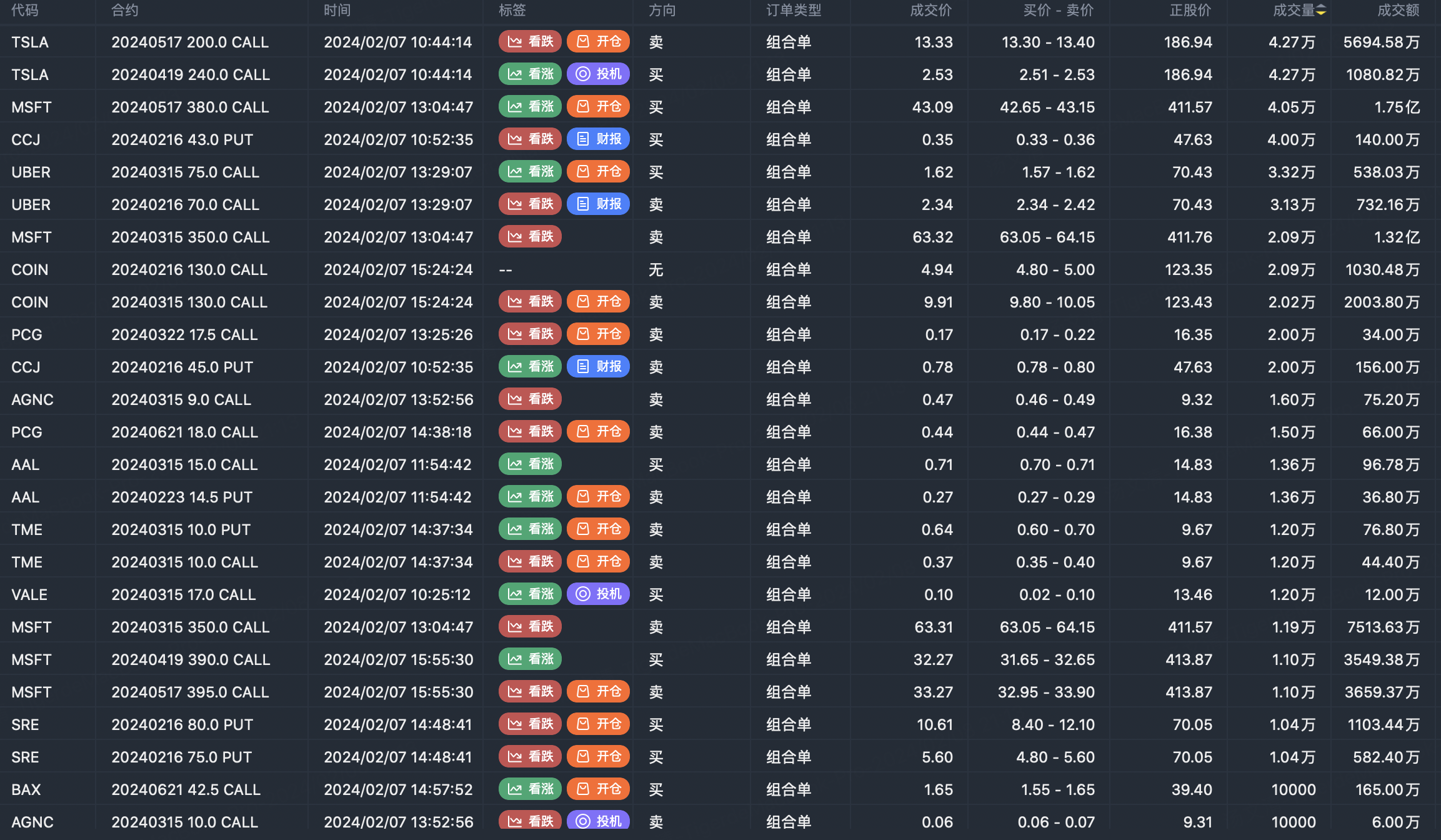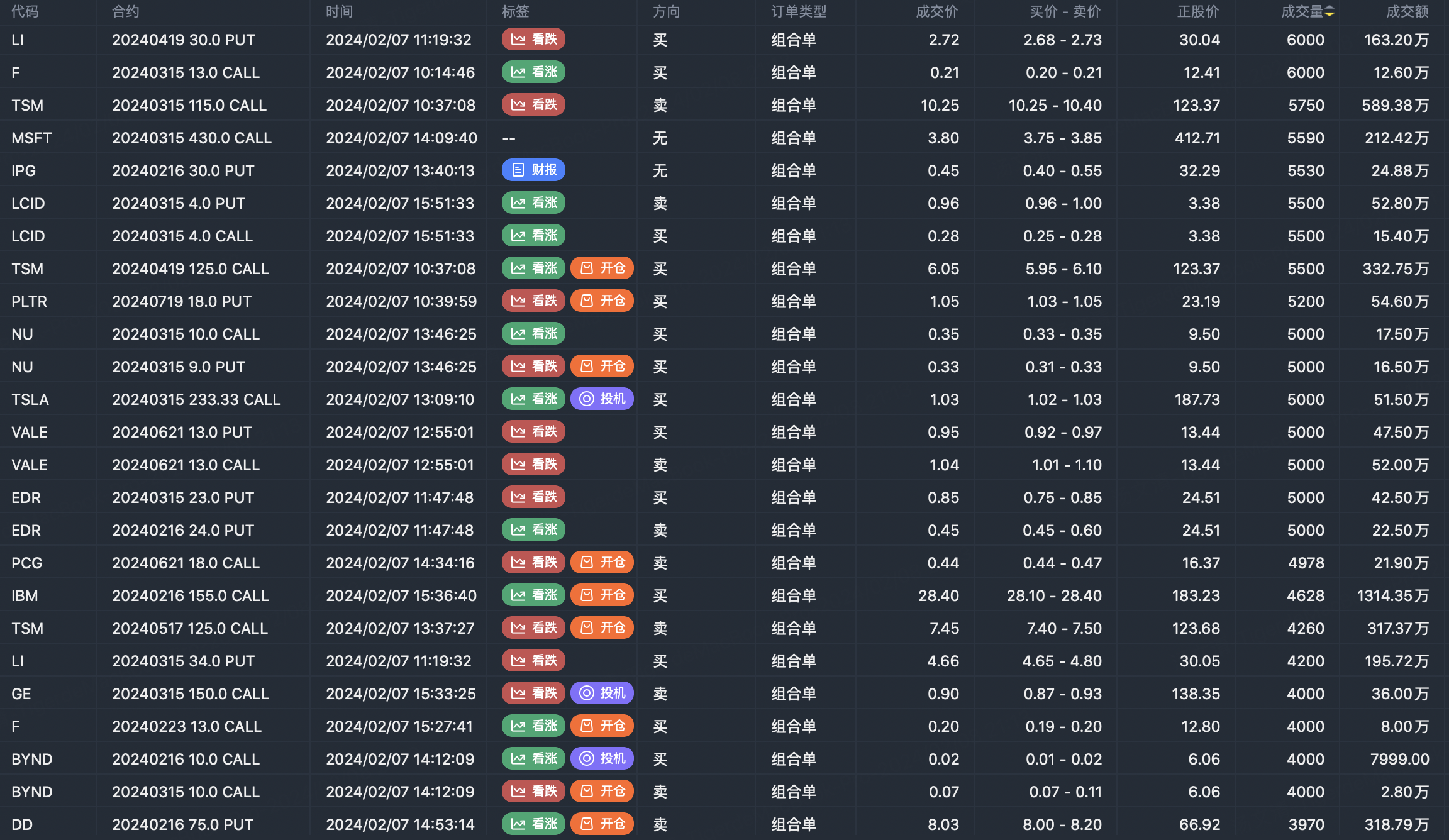 Note: This image data is from Tiger PC. This screening is a significant portfolio of options contracts in the market. Portfolio opening includes a variety of underlying trends, requiring traders to further master the basic knowledge of options for analysis and judgment.