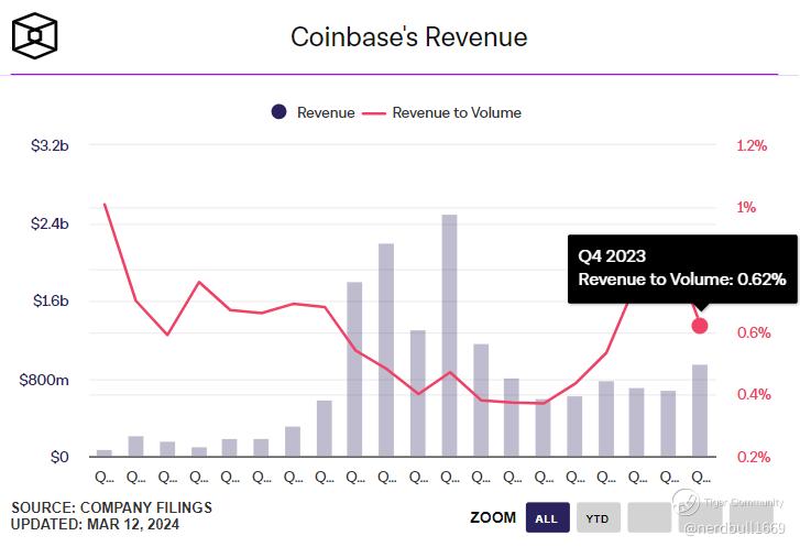 The revenue to Volume also decline to 0.62% as of Q4 2023, We might see a better percentage in 2024 Q1, but we will see how Coinbase actually managed to reduce its debt through the senior notes issuance. And also its operating cost need to be curbed.
