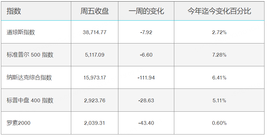 Stocks were mostly lower for the week, as investors weighed upside surprises in inflation data and signs of moderating consumer spending. The Dow Jones Industrial Average held up best among the major indexes and reached a record high on Wednesday before falling back to end the week. Energy shares outperformed on the back of higher oil prices, while technology shares lagged due to weakness in NVIDIA and other chipmakers.
