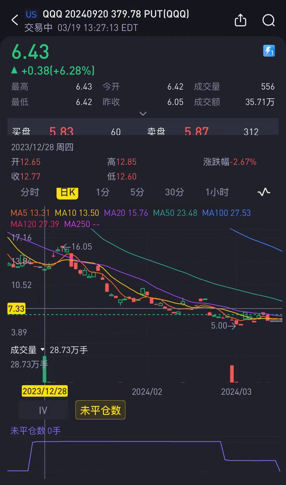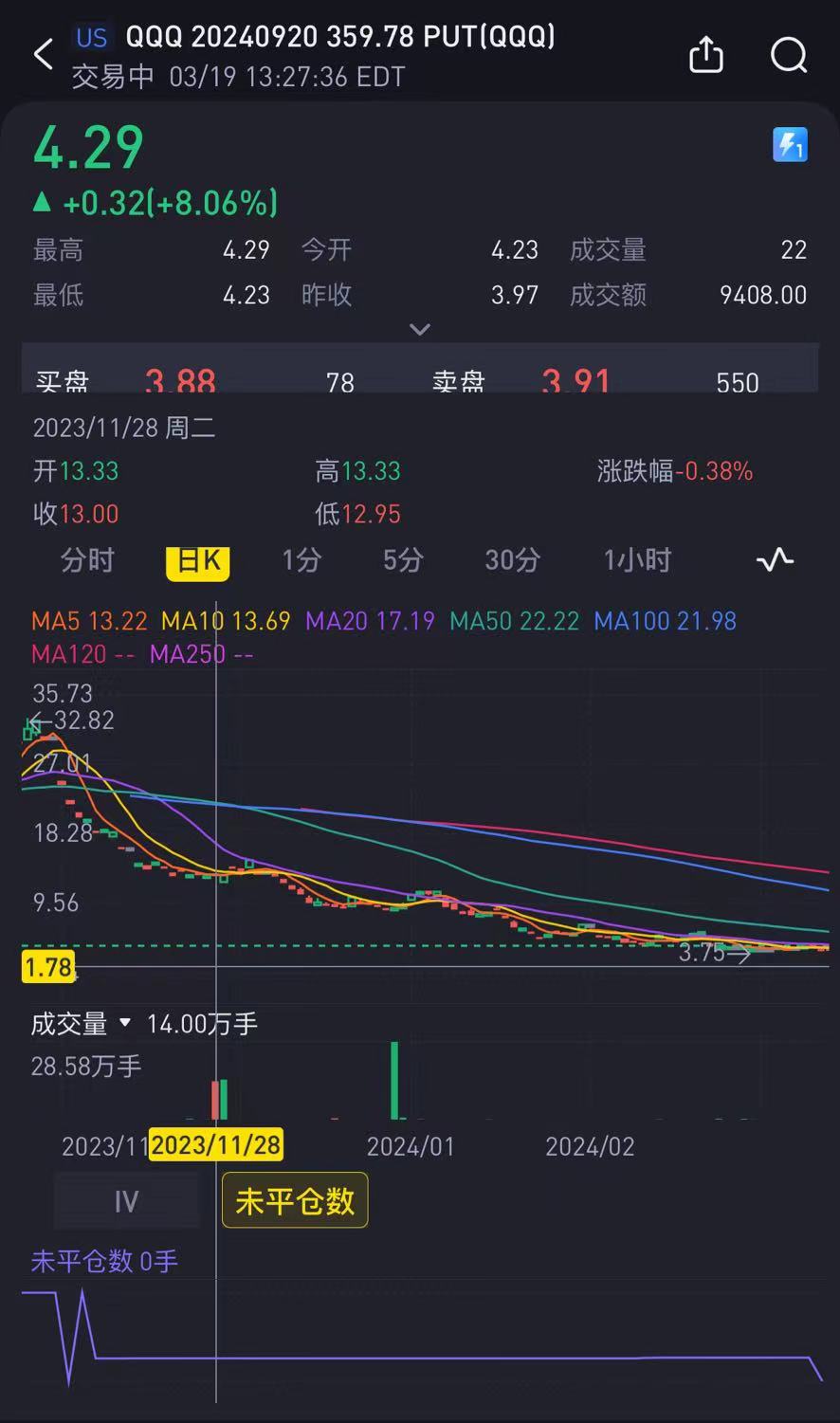 Unfortunately, the end of November is only sideways, not to cut interest rates but to prove that the economy is strong. Time came to the end of the year, the end of December before the market a small pullback, the big guy in the pullback before the precise roll position, the 280,000 hands 360 into 280,000 hands $QQQ 20240920 379.78 PUT$ , the total right fee is still 360 million