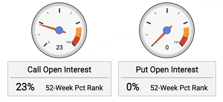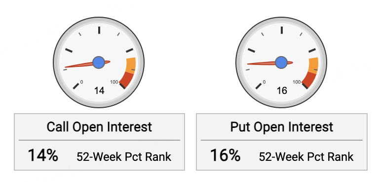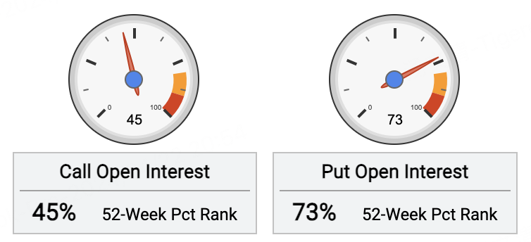 The Russell 2000 ETF (IWM) options overall showed bullish trading sentiment, with buyers of put options dominating. Open call interest declined -15.2% over the past 5 days, while open put contracts fell -6.5% over the same period.