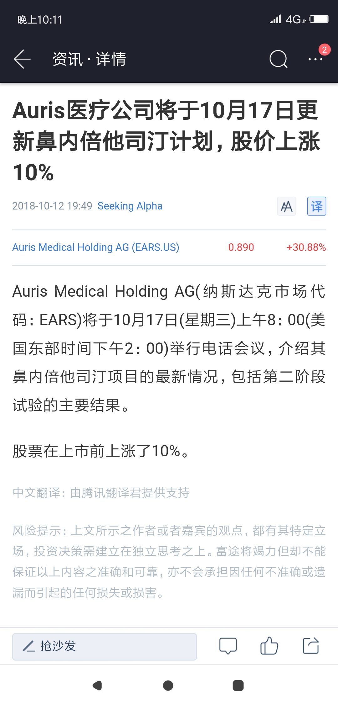 $Auris Medical Holding AG(EARS)$。。。